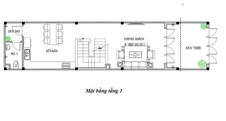 - Diện tích xây dựng: 4 x 16 = 64m2.