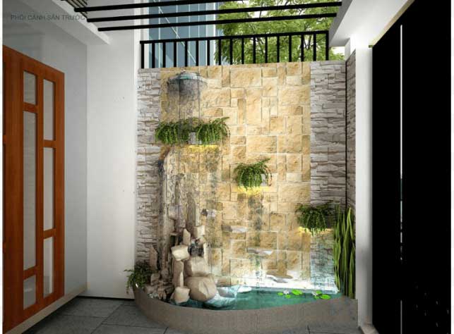 Mặt tiền sân trước bố trí khu tiểu cảnh trông rất độc đáo.
