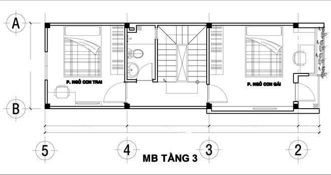 Mặt bằng tầng 3: 2 phòng ngủ yên tĩnh (cho con gái và con trai) – phòng vệ sinh chung – ban công thoáng mát.