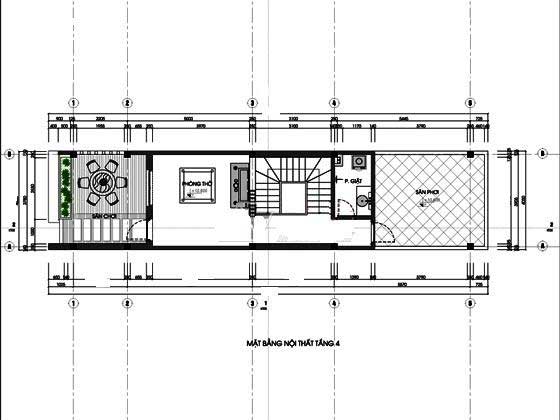 Mặt bằng tầng 4: Sân chơi cho gia đình mát mẻ – phòng thờ nằm khu vực riêng – phòng giặt ủi – sân thượng.