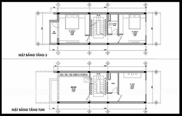 Vì nhà của anh Hoàng có khá đôn thành viên cho nên ở tầng 3 được xây dựng thêm 2 phòng ngủ theo yêu cầu của anh Hoàng. Về mặt bằng nhìn chung khá rộng rãi và thoải mái, cũng được bố trí tương tự nhu tầng 2, có toilet chính giữa và cầu thang thông lên tầng 4.