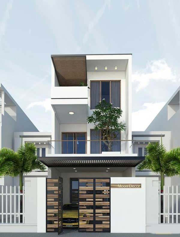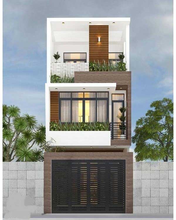 Mẫu nhà phố có sân nhà rộng rãi kết hợp cùng các khối đua được xây dựng ở mỗi tầng tạo nên không gian sống tiệnnghi và thẩm mỹ. Ngoại thất được bố trí tối ưu, sao cho phù hợp với không gian sống lại có thể làm cân xứng với kết cấu của căn nhà. Là mẫu nhà phố 40m2 được ưa chuộng hiện nay.