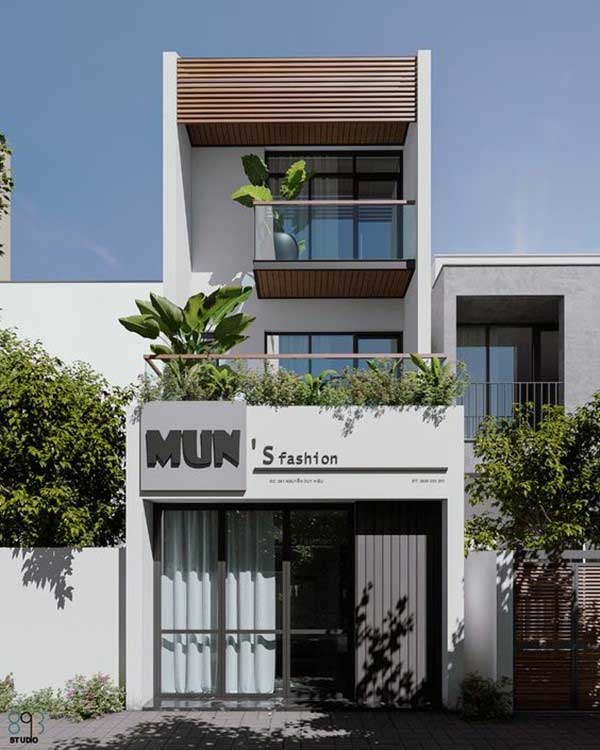 Vì có lợi thế nằm trên mặt phố, nơi này có đông người qua lại nên việc tận dụng để kinh doanh là một chiến thuật hay. Mẫu nhà phố 40m2 được xây dựng có mặt tiền rộng rãi, thoáng mát, phù hợp cho chủ hộ bày trí và kinh doanh buôn bán. Mặt tiền được lắp đặt bằng hệ thống cửa kính, nếu sợ ánh nắng gắt chiếu vào có thể sử dụng rèm treo để cản bớt ánh sáng. Tầng 2 và tầng 3 có trang trí thêm cây xanh, ban công xây dựng với diện tích khiêm tốn nhưng đáp ứng đủ các công năng mà một căn nhà phố mang lại. Là mẫu nhà phù hợp cho những nhà kinh doanh trẻ tuổi ngày nay.