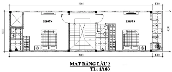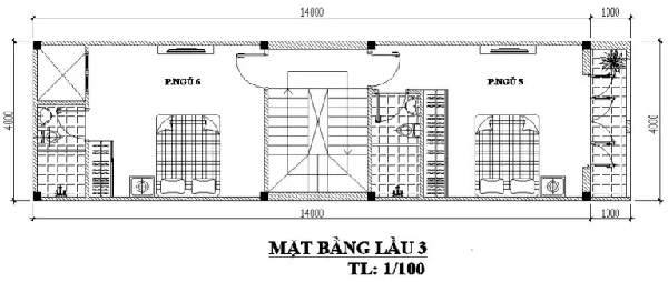 Khu vực lầu 3 được bố trí giống với mặt bằng lầu 1 và 2 phía trên. Với cách bố trí không gian này cho mẫu nhà phố 4 x 14 phù hợp với gia đình có nhiều thành viên sinh sống dưới một mái nhà, gia đình có nhiều thế hệ. Ngoài cách bố trí như trên, gia chủ hoàn toàn có thể bố trí khác như: