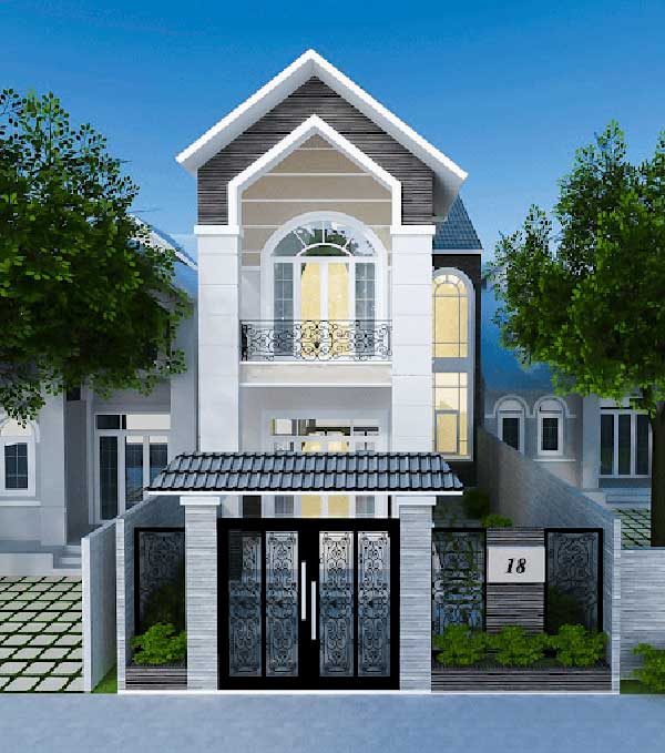 Toát lên vẻ đẹp thanh lịch bởi sự kết hợp hoàn hảo của gam màu xanh và trắng. Căn nhà phố 4x17m phát huy được những công năng hữu ích cho những ai đầu tư xây dựng. Ngoài ra, phần ngoại thất còn được trang trí rất gọn gàng, đơn giản. Ban công được xây dựng thiết kế mái chắn có nhiều thanh ngang nối tiếp, có thể tận dụng để trồng lan, cây cảnh ngay tại sân thượng…