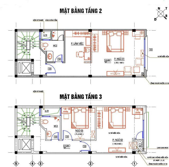 1. Tham khảo phương án mặt bằng cho nhà 5 tầng có thang máy