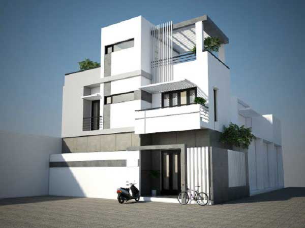 Mẫu thiết kế nhà phố đương đại với sắc trắng làm tông màu chủ đạo kết hợp với tông đen huyền bí tạo sự bí ẩn nhưng đầy cuốn hút cho ngôi nhà.Việc lựa chọn chất liệu kính cho các ô cửa sổ cũng như ban công đem lại 1 không gian thoáng đãng,trong lành,con người sống hòa hợp với thiên nhiên.Thiết kế mãi bằng đã không còn xa lạ gì với mọi người,tuy nhiên,bằng sự nhẹ nhàng trong phối hợp màu sắc cũng như dường nét đơn giản đậm chất thẩm mỹ chắc chắn có thể làm xiêu lòng ngay cả khách hàng khó tính nhất.
