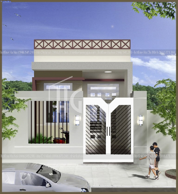 Thiết kế không gian sinh hoạt không có quá nhiều thay đổi so với không phía trên, điểm chú ý ngôi nhà này là gia chủ xây dựng hệ thống cổng rào bao quanh nhà. Tại đây gia chủ vừa để tiểu cảnh cây xanh để mang đến không gian xanh cho ngôi nhà lại vừa có thể để oto, xe máy với hệ thống tường rào chắc chắn bên ngoài. Không gian sân trước này được gia chủ để hở để tạo nên độ thông thoáng, mang đến ánh sáng cho căn nhà. Việc đặt gara trước nhà sẽ tách biệt gara với không gian sinh hoạt phía trong, không ám mùi phương tiện vào không gian sinh hoạt.