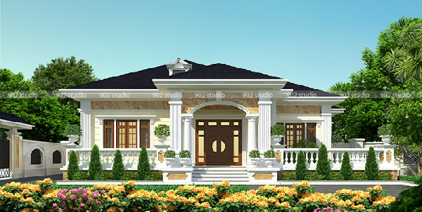 Bản thiết kế ấy đã được ứng dụng và cho ra đời một mặt tiền cực kỳ đẹp mắt, nhận được cái gật đầu từ chính gia chủ và nằm trong top thiết kế tham khảo cho những gia chủ đang có ý định xây dựng tương tự. Có thể thấy ngôi nhà sử dụng thiết kế theo một phong cách hiện đại với tone trắng trang nhã kết hợp vùng thiết kế mái Thái cùng màu sắc cổ điển mang đến vẻ đẹp sự sang trọng cho ngôi nhà.