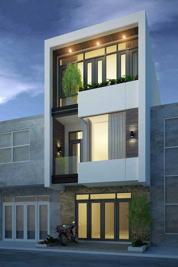 Nếu bạn yêu thích sự đơn giản nhưng vẫn phải toát lên gia thế của mình thì đừng bỏ qua mẫu thiết kế mẫu nhà phố 7x9m số 7 này nhé.Với lối kiến trúc đơn giản kết hợp cùng mái bằng quen thuộc, căn nhà tạo cho gia chủ sự đầm ấm và an tâm nhất định. Những hình khối được sắp xếp trông có vẻ lộn xộn nhưng lại vô cùng hài hòa và cân xứng. Sự hòa quyện màu sắc giữa tông sơn trắng chủ đạo kết hợp ánh đèn vàng lung linh và màu xanh cây cỏ tạo 1 không gian đầy thơ mộng và thấm đẫm chất thơ, quyến rũ, mê đắm lòng người.