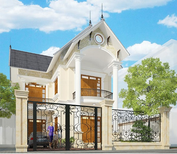 Một căn nhà mẫu nhà phố 7x9m với nhỏ gây cảm tình với ta ngay từ cái nhìn đầu tiên.Với tông màu chủ đạo là trắng sữa điểm xuyến nâu cà phê,thiết kế toát lên sự trang trọng và mới mẻ. Hệ thống cửa vào bằng chất liệu sắt được gia công và điêu khắc rất thiện nghệ đồng thời việc sắp xếp các họa tiết trông cũng vô cùng vui mắt và tạo sự ấn tượng. Mẫu thiết kế chú trọng sử dụng nhiều họa tiết dạng kẻ sọc như lan can và mái hiên khiến mặt tiền thêm phần tươi trẻ và hiện đại hơn.