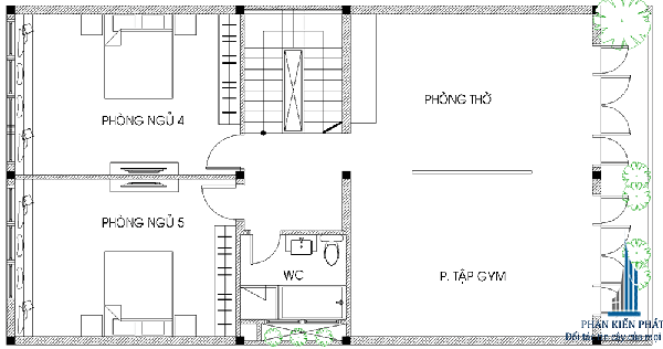 Khu vực tầng 3 với 2 phòng ngủ, 1 thờ, 1 phòng tập gym và 1 nhà vệ sinh cùng ban công phía trước sẽ là chỉnh thể thống nhất cho toàn bộ căn nhà. Tại vị trí phòng tập gym tùy theo nhu cầu của từng gia đình mà bố trí thành phòng ngủ hoặc một khu vực ban công rộng lớn.