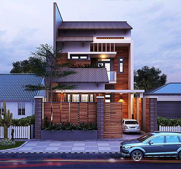 Vừa truyền thống, vừa hiện đại, mẫu nhà 2 tầng 8x20m này rất thích hợp với những ai yêu thích một không gian nhẹ nhàng, tiện nghi. Ngoại thất ngôi nhà được bao phủ bởi một màu gỗ ấm áp, kết hợp với mái ngói nhỏ, xếp chồng lên nhau vô cùng bắt mắt. Thêm vào không gian một vài chậu cây xanh và bóng đèn sẽ là cách giúp bạn có được một không gian sống đẹp và tiện nghi.