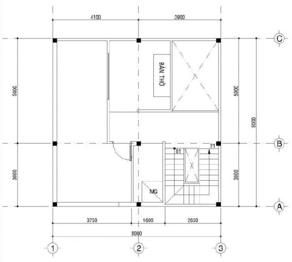 Từ bản thiết kế mặt bằng phía bên trên có thể dễ dàng nhận thấy diện tích sàn 8x9m thuận lợi lưu thông không khí, ánh sáng trong không gian nhà. Với đặc điểm này gia chủ không còn phải lo lắng tình trạng bí bách hay không có ánh sáng trong toàn bộ không gian nhà mà diện tích méo hay khuyết gặp phải.