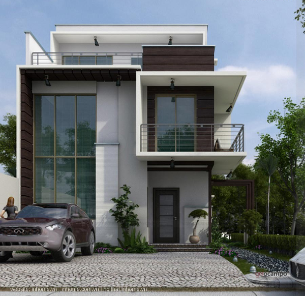 Phong cách hiện đại không giới hạn sự sáng tạo của con người, chính vì thế phần mặt tiền ấn tượng với khối hình vuông vực chắc chắn kết hợp sự phối màu sắc trắng nâu. Tăng thêm điểm nhấn, kiến trúc sư sử dụng đường chỉ phào, ốp đá trắng cho cột trụ đặt chìm ở mặt tiền để tăng sự chú ý của bất kỳ vị khách nào đi ngang qua.