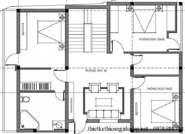 Mặt bằng diện tích tầng 2 là 3 phòng ngủ, phòng sinh hoạt chung và một nhà vệ sinh chung. Với cách bố trí mặt bằng như thế này phù hợp với gia đình nhiều thế hệ sinh sống. Cùng với mặt bằng vô cùng tiện nghi như thế này thì cùng xem phương án phối cảnh mặt tiền như thế nào để đạt được top thiết kế nhiều người yêu thích.