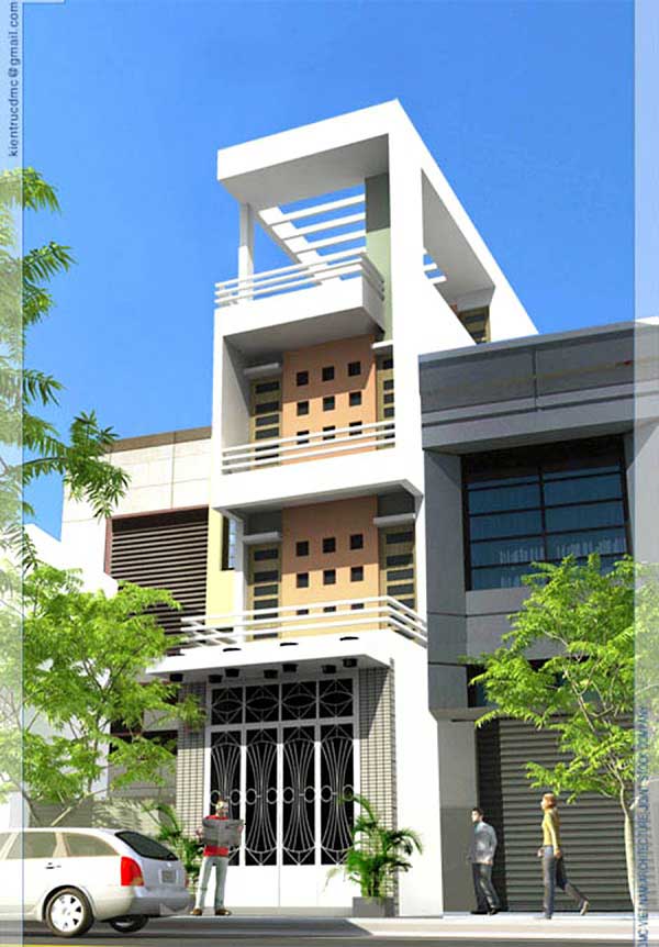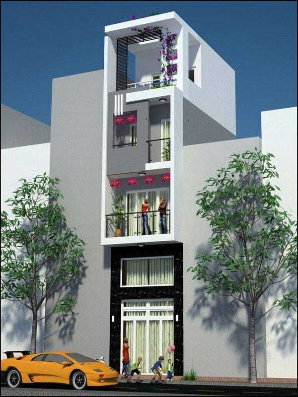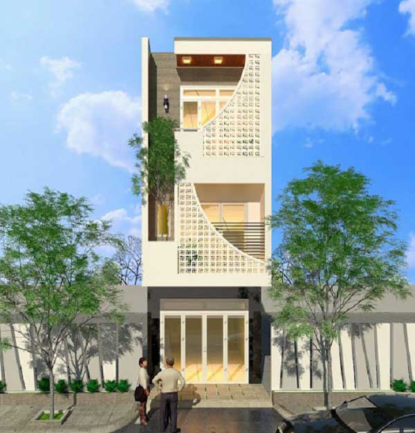 Mẫu nhà này được thiết kế gồm có ba tầng mang lại sự tiện nghi cho gia chủ khi nó được thiết kế hệ thống của kính mà khi ở trong nhà bạn có thể quan sát được những cảnh vật ở bên ngoài một cách dễ dàng. Ở tầng hai và ba có thiết kế ban công tô điểm thêm một vài chậu cây cảnh cùng tô điểm thêm cho ngôi nhà. Mẫu nhà này sẽ rất thích hợp cho những ai yêu thích sự đơn giản.
