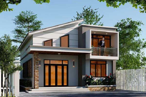 Mới lạ, độc đáo hơn khi bạn lựa chọn mẫu nhà mái lệch. Đây là thiết kế được xem là hiện đại nhất hiện nay. Với ngôi nhà mái lệch này ngoài vẻ ngoại thất thông thoáng thì bên trong ngôi nhà được thiết kế khá bắt mắt với một phòng khách rộng rãi, ưu ái nhất cả về trang trí nội thất đến diện tích của ngôi nhà. Không gian còn lại dành cho phòng bếp, nhà vệ sinh và 3 phòng ngủ.