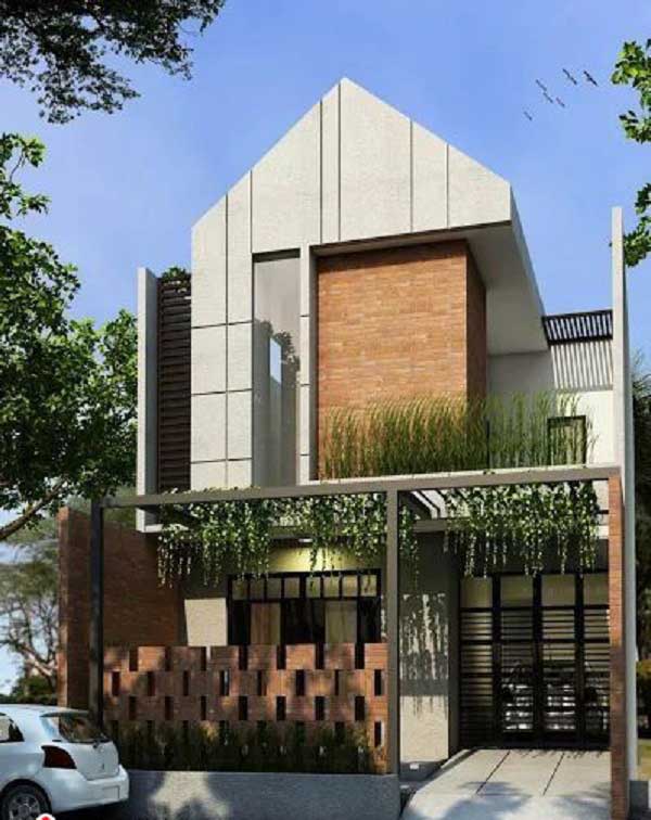 Với kiến trúc hiện đại không dựa trên những tỉ lệ, các đường nét đối xứng vì vậy mà giúp cho các kiến trúc sư không ngững sáng tạo, không ngừng phát triển ý tưởng độc đáo để mang đến những không gian nhà phố tuyệt đẹp cho người sử dụng. Mẫu nhà phố rộng 6m độc đáo với những mẫu mặt tiền khác nhau, thay vì thiết kế mái thái, sử dụng mái bằng không ngói mang đến sự mới lạ. Cùng với các mảng tường so le, giật cấp cùng những ô cửa kính với các kích thước khác nhau kết hợp cùng những cây xanh giúp mặt tiền bên ngoài trở nên độc đáo và ấn tượng.