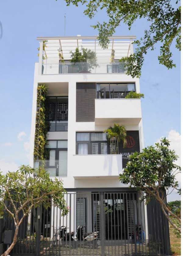 Thiết kế nhà phố theo phong cách tân cổ điển với màu sơn trắng cùng lan can kim loại giúp cho căn nhà trở nên sang trọng và hấp dẫn hơn. Cho dù là mặt phố nơi có mật độ xe cộ qua lại và người nhiều. Quỹ đất hạn hẹp, và chắc chắc nếu bạn yêu thích phong cách cổ điển Châu Âu thì đây sẽ là một gợi ý tuyệt vời cho sở thích của bạn. Những cánh của sắt hay lan can bằng sắt sẽ giúp cho căn nhà của bạn trở nên đẹp hơn, mang vẻ đẹp cổ điển nhưng cũng không kém phần sang trọng theo lối kiến trúc phương tây. Những dây leo thường xuân sẽ là một gợi ý thú vị dành cho bạn giúp tạo điểm nhấn cho cả căn nhà.