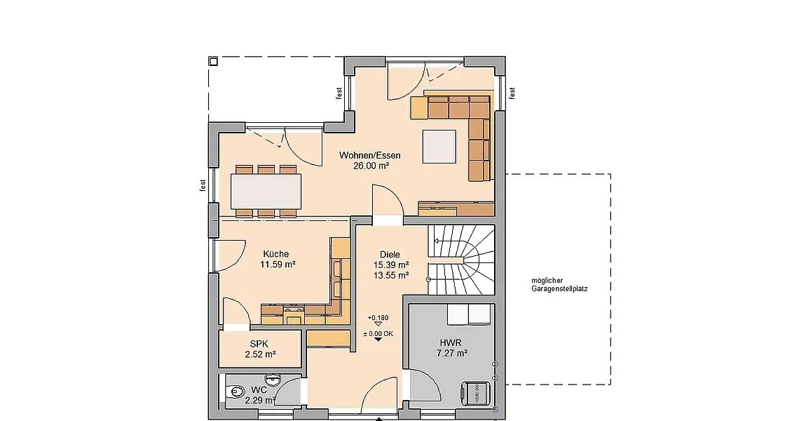 Kết cấu từ tầng 1 : Thông qua bản vẽ, mọi người có thể đọc được các chức năng từ các chi tiết gợi ý mà kiến trúc sư mang đến từ chức năng chính của chúng. Từ phía cửa ra vào là 1 nhà vệ sinh nằm đối diện là chức năng từ phòng ngủ số 1, kết cấu từ cầu thang để dẫn lên mặt bằng tiếp theo, 1 phòng khách, 1 nhà bếp và không thể thiếu sân sau nơi được đặt thêm một bàn ăn mà từ phối cảnh phía sau được kết hợp thêm 1 bàn ăn mà chúng ta đã nhắc đến.