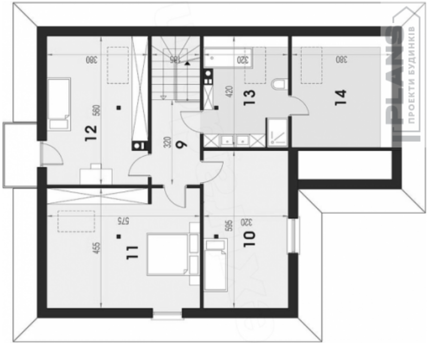 Mặt bằng tầng 2 : Bám sát theo những yêu cầu mà mặt bằng tiếp theo được triển khai với các chức năng từ phòng ngủ phân bổ từ 4 góc nhà. Chúng khá giống với thiết kế số 1 nhưng được tạo nên từ các diện tích khác nhau.
