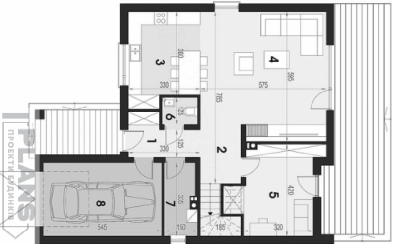 Mặt bằng tầng 1 : Gồm các chức năng đầy đủ khi chúng là không gian sinh hoạt chung với gara, nhà bếp, phòng khách, phòng sinh hoạt chung từ các vị trí thích hợp để, thông thoáng cho gia đình 4 thành viên.