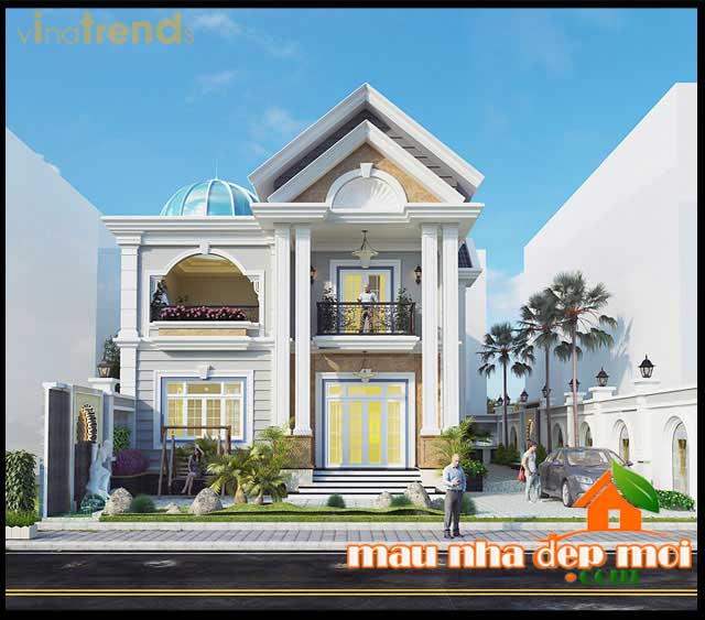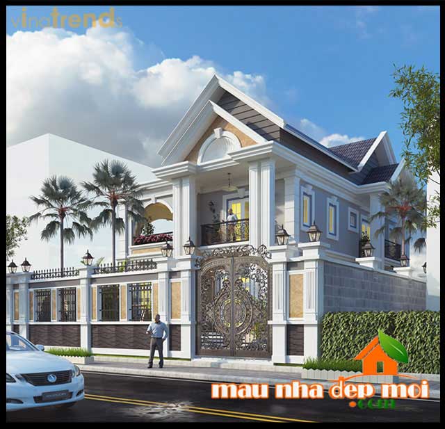 Chủ đầu tư xây dựng ngôi nhà này là anh Nguyễn Hoàng Phước, trú quán tại Tân An, Long An, anh mong muốn thiết kế biệt thự đẹp 2 tầng mái thái 120m2 có sân vườn. Diện tích lô đất là 230m2, diện tích thiết kế và xây dựng là 120m2 với đầy đủ các công năng như sau: Tầng 1: phòng khách, phòng ăn, phòng bếp, phòng ngủ, wc chung. Tầng 2 bao gồm 3 phòng ngủ, phòng sinh hoạt chung, wc chung và sân thượng.