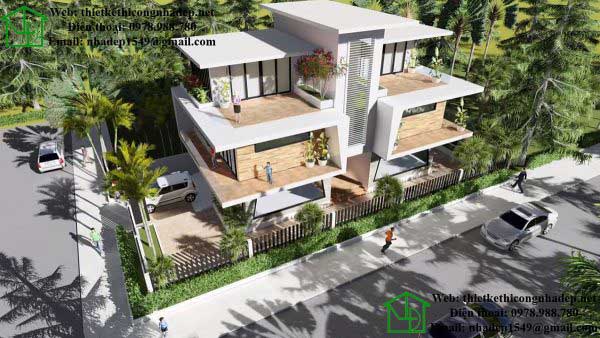 Biệt thự 3 tầng được xây dựng tại vị trí đắc địa, ngay ngã 3 đường do vậy sở hữu tầm nhìn rất đẹp, vừa thông thoáng vừa đầy gợi mở. Do đó, trong khuôn viên dự án các kiến trúc sư sẽ tiến hành quy hoạch thêm 1 sân chơi, sân uống nước phục vụ gia chủ nghỉ ngơi, thoải mái tận hưởng không gian trong lành bao quanh và nhịp sống sôi nổi, vui vẻ của dòng người qua lại tấp nập.