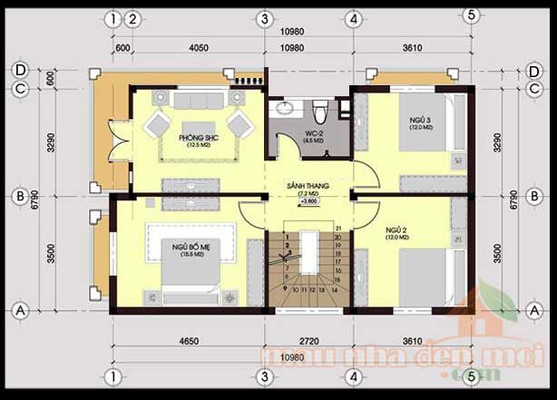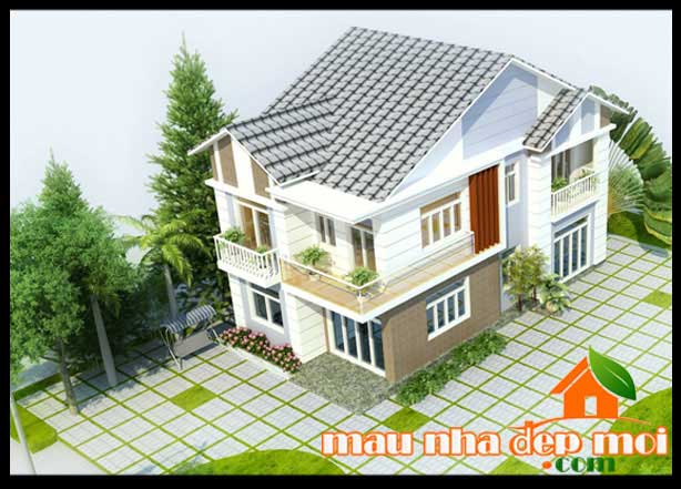 Bản vẽ thiết kế nhà vườn 2 tầng mái thái đẹp ở nông thôn