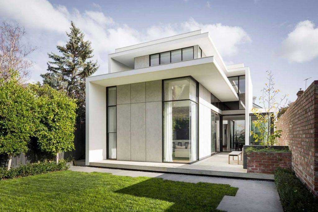 Đây là mẫu thiết kế nhà phố một tầng mang âm hưởng của những căn biệt thự hiện đại kiểu Mỹ phù hợp nếu bạn có diện tích đất trong hẻm tương đối thoải mái. Căn nhà được xây lùi vào để tạo khoảng trống, một bên làm tiểu cảnh, một bên là lối dẫn vào gara và vào cửa chính. Thiết kế của căn nhà cũng rất phóng khoáng khi sử dụng rất nhiều cửa kính lớn để tạo không gian mở kết nối căn nhà với thiên nhiên bên ngoài.