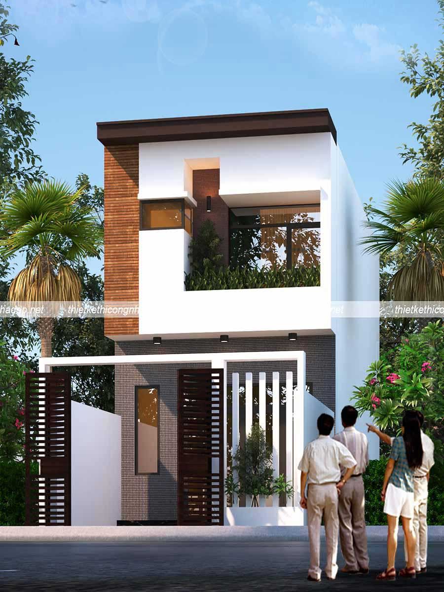 Theo xu hướng kiến trúc nhà ở hiện đại ngày nay, các thiết kế nhà phố đều mang phong cách đơn giản, hiện đại, tiện dụng. Vật liệu xây dựng cũng được lựa chọn thân thiện với môi trường. Mẫu thiết kế nhà phố 2 tầng này là mẫu thiết kế tiêu biểu, xây dựng các khối hình học với chức năng trang trí, điểm nhấn nổi bật nhất là mái xéo. Cửa kính cũng được sử dụng nhiều để tạo không gian mở, thoáng mát, điểm xuyết cây xanh tạo sức sống cho can nhà.