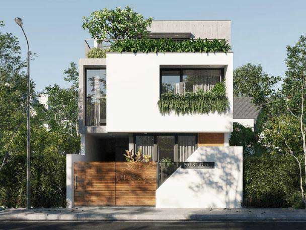 Một mẫu thiết kế nhà phố 2 tầng với hình khối đơn giản với điểm nhấn là ban công rộng rãi được trang trí cây xanh điều hòa không khí. Thiết kế đơn giản, mộc mạc nhưng tạo cảm giác an toàn tối đa cho gia chủ. Nếu bạn yêu thích phong cách tối giản tuyệt đối thì đây sẽ là một lựa chọn không thể phù hợp hơn. Bởi nhìn thôi cũng thấy sự đơn giản, không cầu kỳ rồi đúng không nào? Với chi phí không quá cao, không cần đầu tư vào mái nhà sẽ tiết kiệm được một khoản khá lớn đó nhé. Bạn hãy thử lưu ý mẫu nhà 2 tầng này cho gia đình.