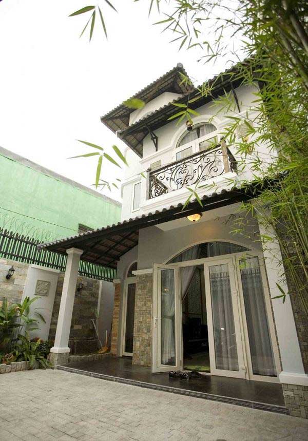 Mẫu thiết kế nhà phố 2 tầng này pha trộn phong cách thiết kế của nhiều kiểu kiến trúc: biệt thự vườn, phong cách cổ châu Âu và cả phong cách kiến trúc Việt Nam xưa tất cả tạo nên phong cách tinh tế, trang nhã. Nếu đây là ngôi nhà của bạn thì chắc chắn bạn sẽ có một tinh thần thoải mái, thư giãn bởi không khí yên bình, giản dị. Chọn lựa cây tre, cây trúc để trang trí sân vườn là một cách đưa nét bình dị của thôn quê vào không gian sống, cũng là một cách để bạn trân trọng nét đẹp và hóa dân tộc, góp phần thể hiện và quảng bá kiến trúc văn hóa Việt Nam cũng rất được ưa chuộng và có giá trị thẩm mỹ cao.