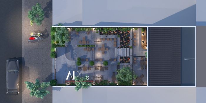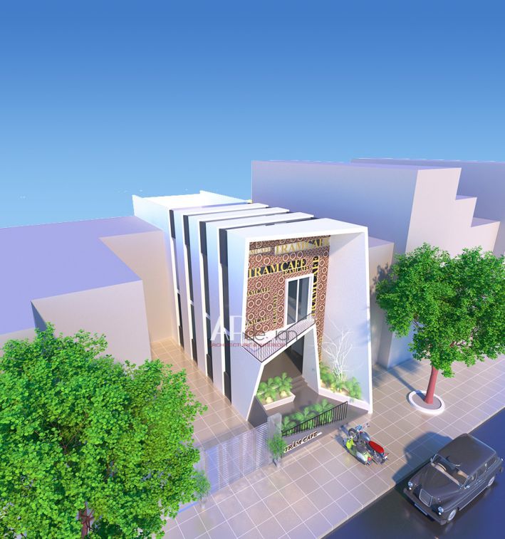 Về phối cảnh của thiết kế quán cafe nhìn từ trên mái của quán xuống tất cả mọi thứ sự thoáng mát kết hợp với không gian cây xanh làm chúng ta liên tưởng đến khu thiết kế của những khu resort, cùng với sự kết hợp sắc chất liệu thiết kế quán khá đơn giản đều là những thứ gần gũi mà hằng ngày chúng ta vẫn thấy trong cuộc sống thường ngày chính điều bất ngờ đã tạo nên sự thân quen đối với khách hàng khi họ đến đây trong lần đầu tiên.
