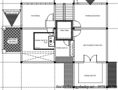 Với ưu thế không gian rộng lớn nên mặt bằng tầng 3 sẽ xây dựng thêm 1 phòng ngủ dành cho khách, 1 không gian để giải trí đọc sách, 1 thư phòng và 1 phòng thờ, 1 phòng giặt. Phần sân thượng có mái che sẽ là nơi rất thích hợp để gia chủ tận dụng làm nơi phơi đồ.
