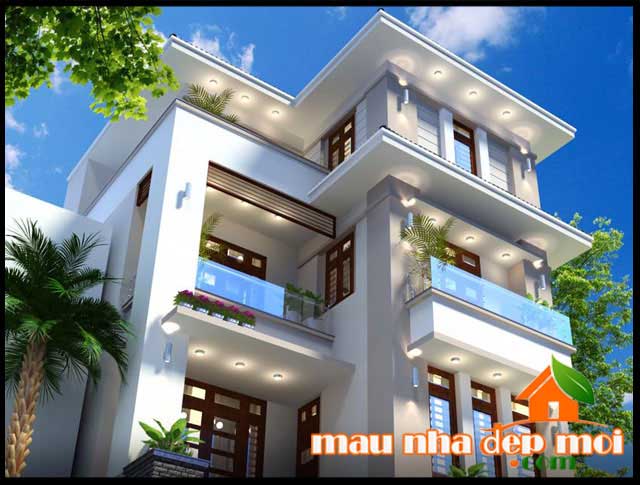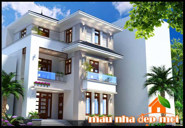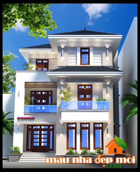 Điểm đặc biệt hơn so với các mẫu nhà khác đó là kết cấu mái khá hiện đại với những khối bê tông được đổ rộng, vuông vức với độ dốc hợp lý, giúp cho hình khối chung của mẫu nhà thêm thanh thoát và bề thế. Kiểu mái ngói màu xanh da trời rất được ưa chuộng trong những mẫu thiết kế biệt thự 3 tầng đẹp, bởi nó phù hợp với điều kiện khí hậu cũng như thị hiếu thẩm mỹ của người Việt.