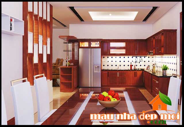 Thiết kế liền kề là phòng ăn khá rộng, đây là nơi sinh hoạt những bữa cơm ngon cùng những câu chuyện vui của các thành viên trong gia đình. Bộ bàn ăn mang đậm phong cách châu Á với gam màu trắng sáng được chị Mai trực tiếp lựa chọn cho ngôi nhà của mình. Đây là nơi quây quần sau một ngày làm việc mệt nhọc cùng nhau chia sẻ những câu chuyện buồn vui.