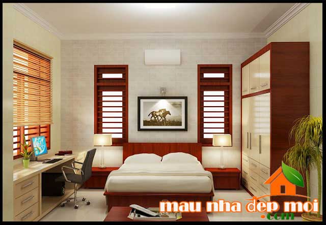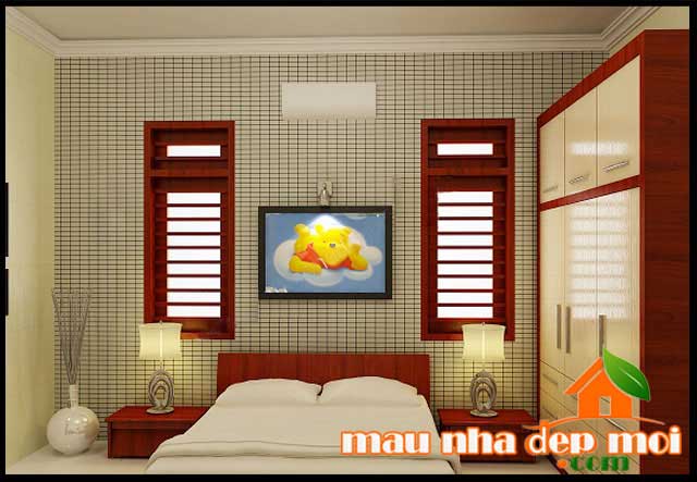 Tầng 2 chúng tôi thiết kế 2 phòng ngủ được xây dựng liền kề nhau. Phòng ngủ của vợ chồng chị Mai và 2 đứa con được thiết kế hiện đại, đầy đủ nội thất như tủ quần áo, bàn làm việc, tab đầu giường, tivi…với diện tích khá rộng. Trên tầng 3 có thêm 1 phòng ngủ và 1 phòng karaoke để cả gia đình thể hiện tài năng của mình.