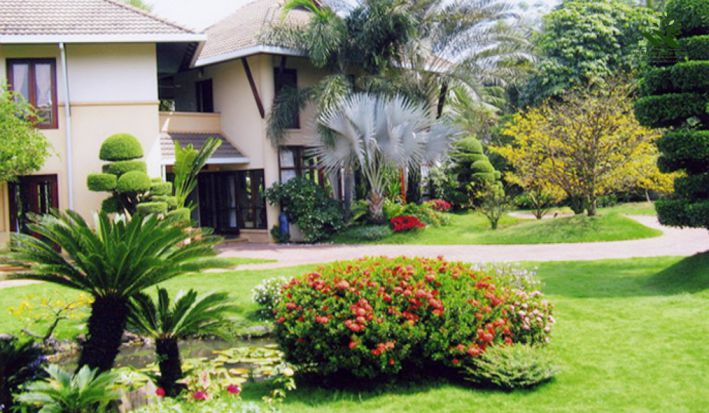 Sự kết hợp hài hòa giữa kiến trúc công trình và kiến trúc cảnh quan là một trong những yếu tố rất được chủ đầu tư và nhà thiết kế chú ý đến. Chính vì vậy, tiểu cảnh sân vườn cũng là một phần quan trọng được thiết kế tỉ mỉ đến từng chi tiết. Xung quanh hệ thống tường rào là những thảm cỏ xanh mát. Không gian dành cho sân vườn được bố trí các loại cây cảnh, cây phong thủy, giàn cây cảnh để mang đến không gian xanh mát, thoáng đãng, tạo ra những nguồn năng lượng tích cực cho cuộc sống và mang đến những giờ phút nghỉ ngơi thư thái, gần gũi với thiên nhiên.