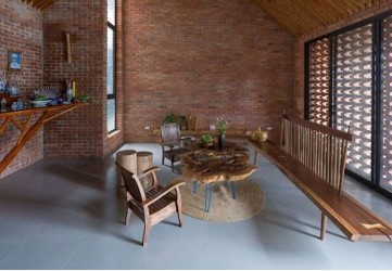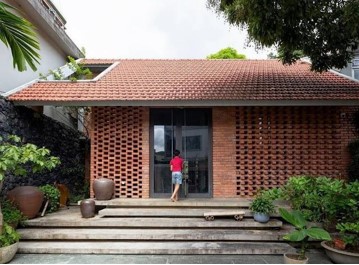 Từ phía mặt tiền của ngôi nhà, chắc hẳn bạn sẽ liên tưởng ngay đến dáng vẻ từ vùng nông thôn tại Việt Nam với một màu sắc giản dị, gần gũi tạo cảm giác thư thái vốn làm nên sự thành công bởi những giá trị đã cũ mà nhiều gia đình mong muốn được quay lại. Ngôi nhà sử dụng với phần lớn từ gạch ngói và gạch xây tường, không sử dụng đến các quy trình như tô, trét hay sơn mà giữ riêng cho mình màu sắc nguyên bản.