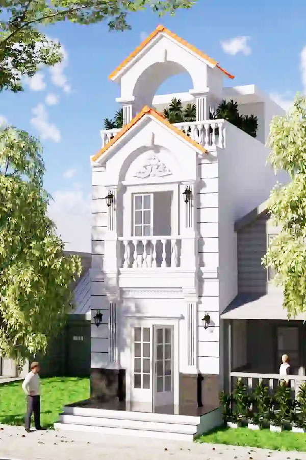 Phong cách hiện đại là xu hướng dành cho ngôi nhà phố 1 trệt 1 lầu 1 tum, tuy nhiên trong top mẫu nhà đẹp thì thiết kế theo phong cách tân cổ điển không thể không nhắc.