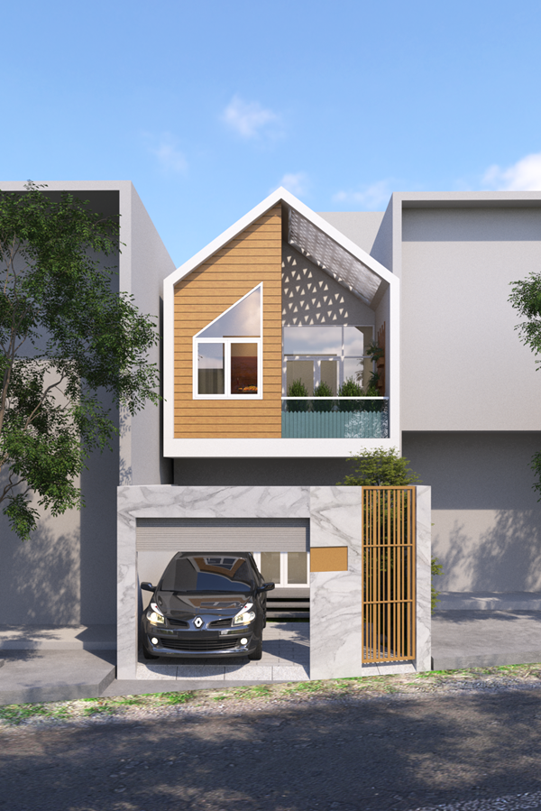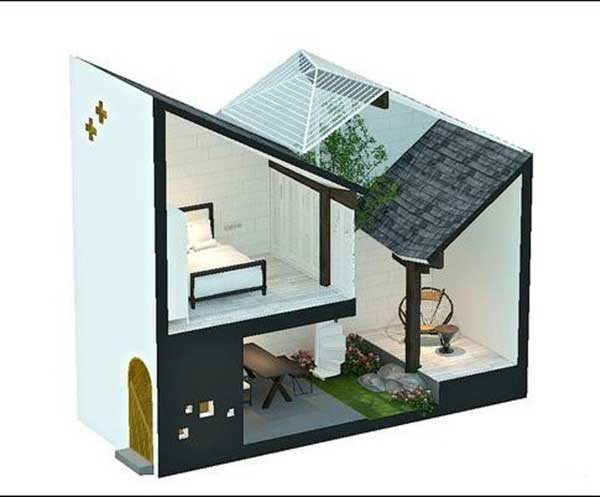 Một thiết kế dành cho những gia đình có diện tích thực sự nhỏ và yêu thích thiết kế thông minh, tiện lợi. Ngôi nhà phù hợp với những gia đình nhỏ hoặc những người sống độc thân bởi kiểu thiết kế tích hợp không gian khiến việc sinh hoạt trở nên linh hoạt, tiện lợi và tiết kiệm thời gian hơn. Do hạn chế diện tích nhưng kiến trúc sư đã khéo léo phối hợp với tiểu cảnh và cây nhỏ nên đảm bảo không gian sống xanh cho gia đình.