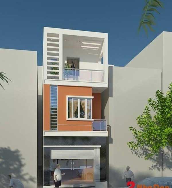 Tiếp theo là thiết kế dành cho những ngôi nhà có diện tích mặt tiền từ 4-5 mét. Với diện tích như vậy thì xây dựng một ngôi nhà 2 tầng là hợp lý nhất vì nó mang lại cảm giác chắc chắn và cân đối hơn bao giờ hết. Ngôi nhà với phần tường được thiết kế kẻ ngang nên cảm giác mặt phía trước như rộng hơn. Do ngôi nhà diện tích nhỏ nên sân vườn hạn chế, kĩ sư đã khéo léo bố trí cây xnah hai bên hông đảm bảo không gian xanh cho ngôi nhà.