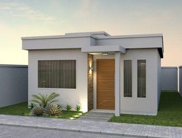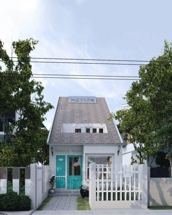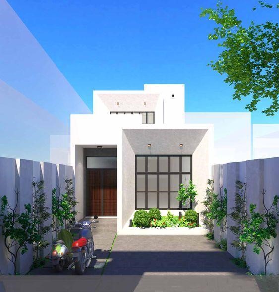 Ngôi nhà sử dụng phần mái bằng và không sử dụng quá nhiều hình thái trang trí bên ngoài. Chỉ là một tông màu trắng sữa làm chủ đạo kèm theo là các hình khối từ các gian nhà kèm hệ thống chiếu sáng. Là sự kết hợp hoàn hảo của những mảng khối ô vuông khéo léo để tất cả làm nên một ngôi nhà đẹp. Nhà không quên tạo nên một sân vườn nhỏ gọn kết hợp với thảm cỏ xanh làm nên điểm nhấn cho tổng quan của một công trình. Đây hoàn toàn là một sự lựa chọn cho các ngôi nhà với nguồn kinh phí thấp hoặc các vợ chồng trẻ chưa có đủ điều kiện để xây dựng một ngôi nhà mang giá trị cao.