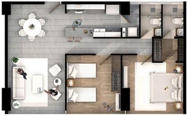 Lại là một bố cục hoàn toàn mới cho kết cấu từ ngôi nhà ống mà thông qua bản vẽ bạn có thể thấy các không gian sáng tạo được đặt ở những vị trí khác xa so với những bản vẽ mà chúng tôi đã chia sẻ. Từ hệ thống cửa ra vào, nhà có một phòng khách kèm 1 nhà bếp theo dạng chữ L , nối liên tiếp là 2 nhà vệ sinh và nằm cuối ngôi nhà là 2 phòng ngủ thể hiện được chức năng sinh sống tiện nghi.