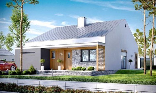Thông qua phối cảnh mặt tiền, nhà hiện lên thông qua góc chụp ngang mà có thể thấy được hết diện tích thửa đất. Ngôi nhà kết hợp gara bên trong mặt bằng xây dựng khi điểm nhấn không ở đâu ngoài hệ thống sân vườn, hình thức trang trí ở vị trí mặt tiền ngôi nhà với hệ thống cửa ra vào kết hợp độc đáo giữ gỗ tự nhiên và gạch đá. Nhà hai mái với độ dốc phù hợp cho việc thoát nước mà còn sử dụng vật liệu cách nhiệt nhằm tăng khả năng giảm đi lượng nhiệt năng đi xuống dưới. Tất cả đã hòa quyện với nhau bằng một cách thức riêng biệt mà nhiều người phải trầm trồ khen ngợi.