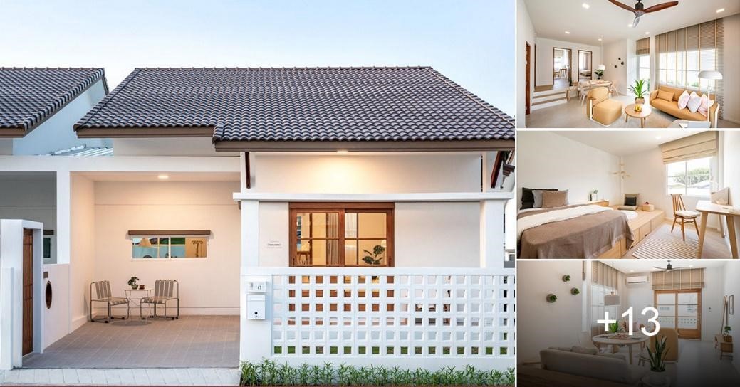 Bên diện tích đang sở hữu là 5x17m, ngôi nhà cho thấy sự tiện nghi với không gian mặt tiền được đánh giá rất cao từ nét thẩm mỹ. Nhà với kết cấu 1 mái từ vật liệu ngói giúp cách nhiệt một cách hiệu quả, độ dốc ổn định tạo nên hệ thống thoát nước tốt. Với màu sắc chủ đạo là trắng tạo nên vẻ tao nhã khi kết hợp với hệ thống từ đèn chiếu sáng vàng càng làm cho không gian thêm tươi mới. Ngôi nhà được sử dụng hàng rào trắng theo đúng tông, phía sân trước rộng rãi là nơi để xe, kèm theo một bộ bàn ghế phía trước nhà giúp gia chủ có thể thưởng thức thư thái bên tách trà vào thời gian cuối ngày.