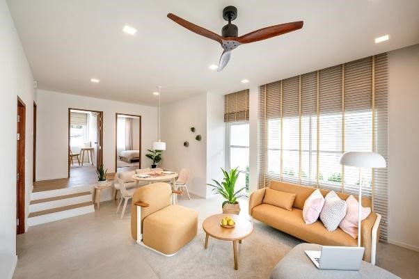 Theo kinh nghiệm và một số chia sẻ từ chủ nhà thì không gian này được lựa chọn đồ dùng nội thất dựa theo một kiểu mẫu đã có sẵn việc tiếp theo mà họ làm chỉ là sắp xếp các vật dụng đó tại nơi mà cho là phù hợp nhất. Gam màu hỗ trợ cho nhau một cách hiệu quả thông qua ứng dụng sự tương phản từ ánh sáng. Mà điểm nhấn là các màu sắc trung tính đánh bật lên trên một khoảng trắng khi gia chủ sử dụng một màu chủ đạo.