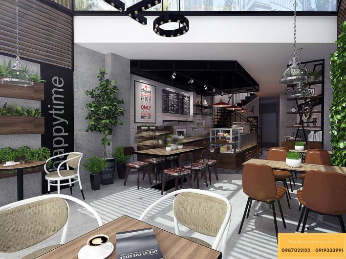 5. Mẫu thiết kế quán cafe 100m2 phong cách hiện đại